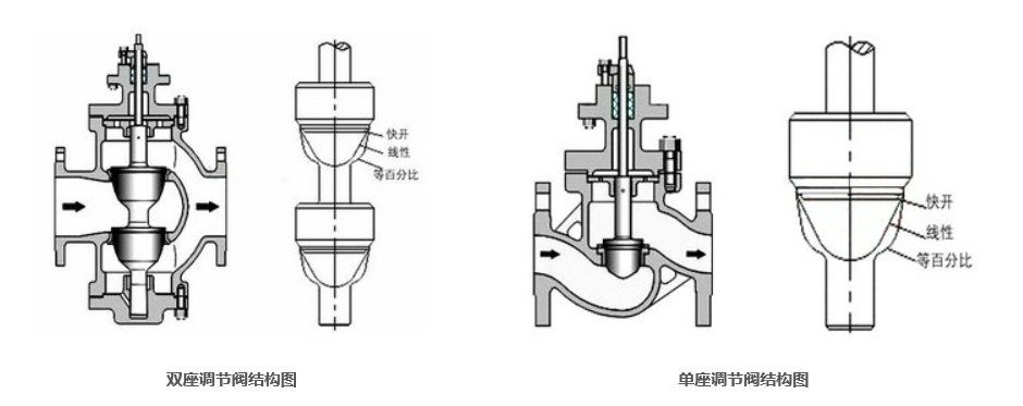 對于這兩者之間該如何選用,從名稱上我們可以很明白的看出,一個是單座,一個是雙座,顧名思義就是閥座的區別,雙座就是閥體內有兩個閥座,單座就是閥體內有一個閥座。